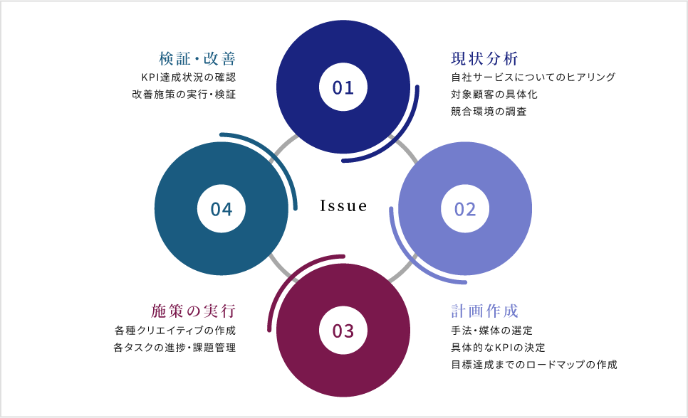 広告以外の見込み顧客の獲得が出来ていないお客様に対して、オーダーメイドなデジタルコンテンツ戦略を提供します。 SEO最適化、インフルエンサー活用など、様々な手法で企画から運用まで支援いたします。
